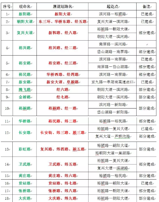 颍南片区共命名道路67条,其中,对49个原规划路名进行调整。
